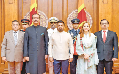 இலங்கைக்கான பாகிஸ்தானின் புதிய உயர்ஸ்தானிகராக நியமிக்கப்பட்டுள்ள மேஜர் ஜெனரல் (ஓய்வுபெற்ற) கலாநிதி நய்யார் நசீர் [Major General (Retd) Dr Nayyar Naseer, HI (M)] நேற்று முன்தினம் ஜனாதிபதி மாளிகையில் நடைபெற்ற உத்தியோகபூர்வ விழாவின் போது ஜனாதிபதியிடம் தனது நியமனக் கடிதத்தை கையளித்தார். இந்தச் சந்திப்பின் போது, பாகிஸ்தான் ஜனாதிபதி மற்றும் பிரதமரின் வாழ்த்துக்களை தெரிவித்துக் கொண்ட உயர்ஸ்தானிகர் நய்யார் நசீர், இரு நாடுகளுக்கும் இடையிலான நீண்டகால சகோதரத்துவ உறவுகளை மேலும் ஆழப்படுத்துவதற்கும் வர்த்தகம், பாதுகாப்பு…